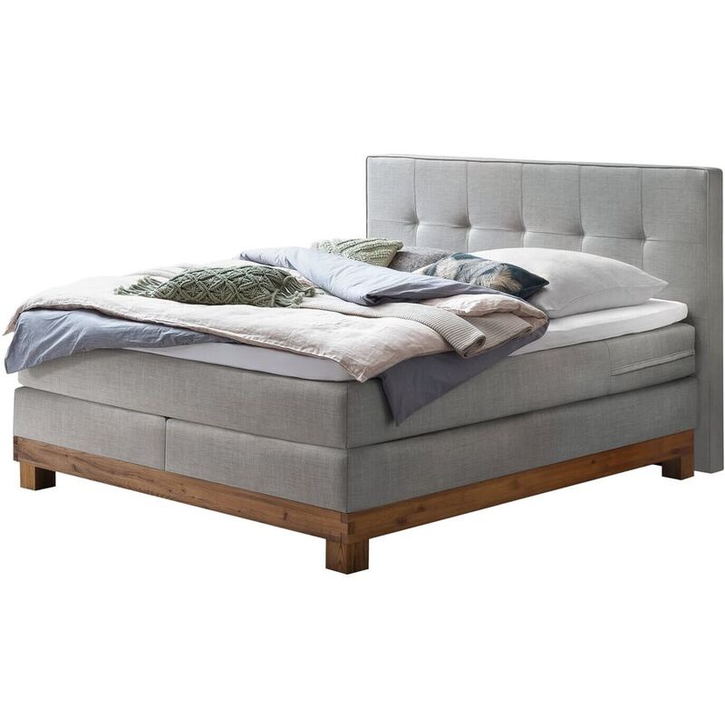 Boxspringbett mit PU-Schaum-Topper fest, Base-Top – Boxspringbett Finca – Eiche – B 160 T 200 H 122 cm – Stellmass: 168 x 210cm, PU-Schaum-Topper, RG 35, 5cm hoch – Matratze: 800 Taschenfedern, Wattierung 100% PES; Topper: Bezug 100% PES, Füllung 100% Klimawatte; Box: 288 Bonellfedern