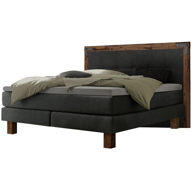 Boxspringbett mit PU-Schaum-Topper fest, Base-Top – Boxspringbett Memphis – Eiche – B 180 T 200 H 130 cm – Stellmass: 198 x 206cm, PU-Schaum-Topper, RG 35, 5cm hoch – Matratze: 900 Taschenfedern; Wattierung 100% PES; Topper: Bezug 100% PES, Füllung 100% Klimawatte; Box: 336 Bonellfedern