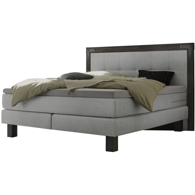 Boxspringbett mit PU-Schaum-Topper fest, Base-Top – Boxspringbett Memphis – Eiche – B 140 T 200 H 130 cm – Stellmass: 158 x 206cm, PU-Schaum-Topper, RG 35, 5cm hoch – Matratze: 609 Taschenfedern, Wattierung 100% PES; Topper: Bezug 100% PES, Füllung 100% Klimawatte; Box: 240 Bonellfedern