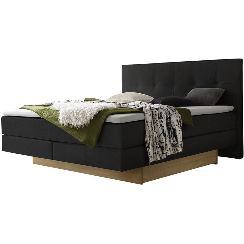 Boxspringbett mit PU-Schaum-Topper fest, Base-Top – Boxspringbett Miami – Eiche – B 160 T 200 H 122 cm – Stellmass: 168 x 210cm, PU-Schaum-Topper, RG 35, 5cm hoch – Matratze: 800 Taschenfedern, Wattierung 100% PES; Topper: Bezug 100% PES, Füllung 100% Klimawatte; Box: 288 Bonellfedern