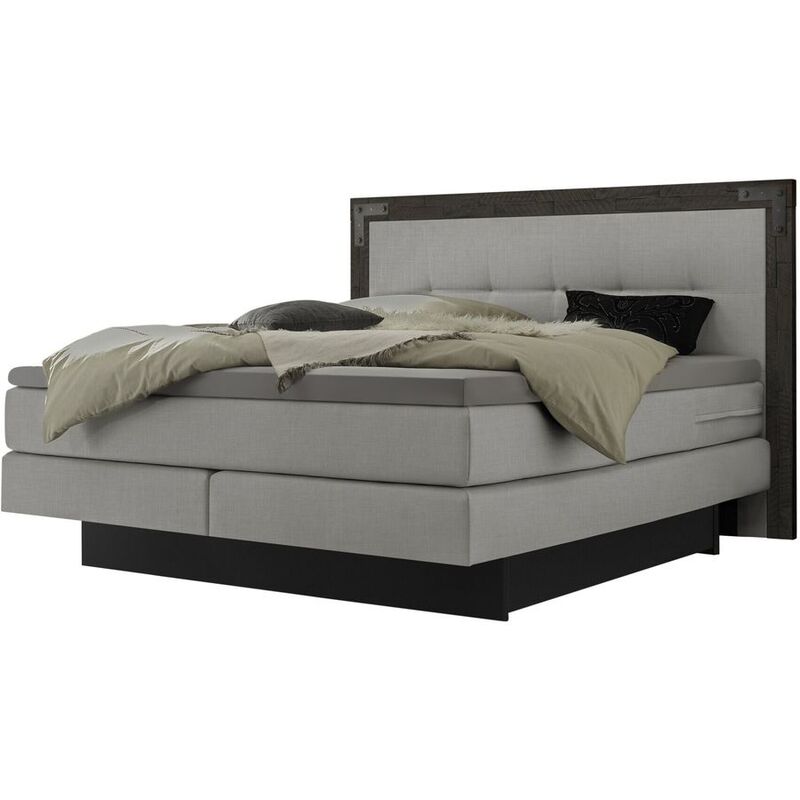 Boxspringbett mit PU-Schaum-Topper fest, Base-Top – Boxspringbett Nevada – Eiche – B 140 T 200 H 130 cm – Stellmass: 158 x 206cm, PU-Schaum-Topper, RG 35, 5cm hoch – Matratze: 609 Taschenfedern, Wattierung 100% PES; Topper: Bezug 100% PES, Füllung 100% Klimawatte; Box: 240 Bonellfedern