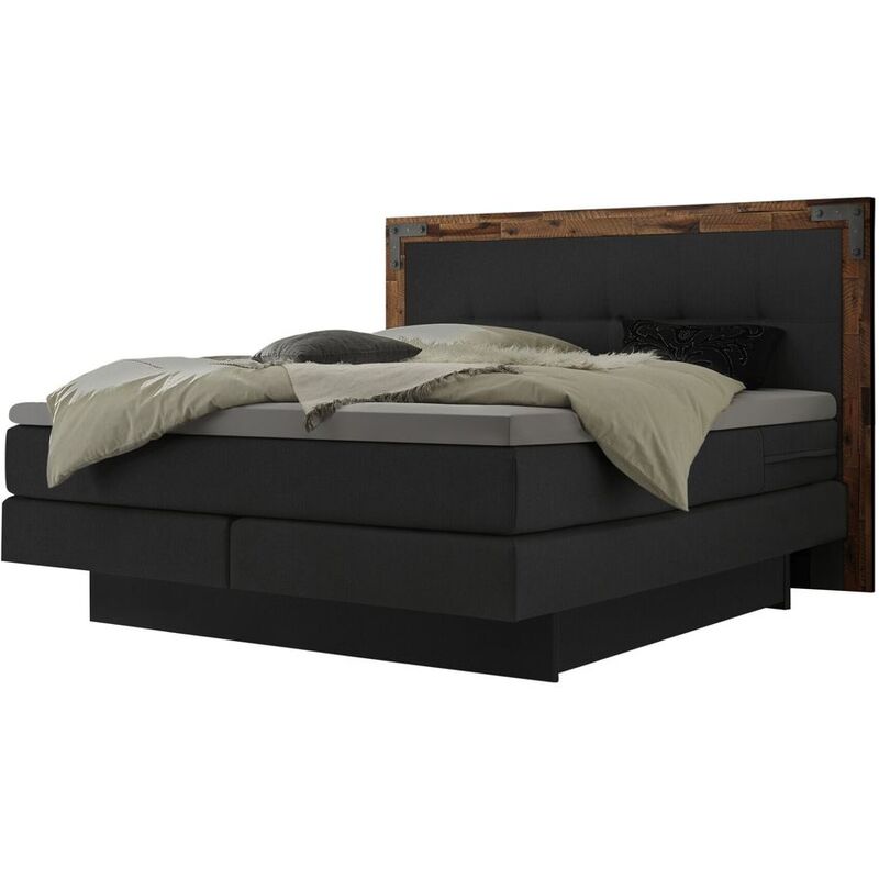 Boxspringbett mit Visco-Topper medium, Agrea-Top – Boxspringbett Nevada – Eiche – B 140 T 200 H 130 cm – Stellmass: 158 x 206cm, Visco-Topper RG 50, 8cm hoch – Matratze: 609 Taschenfedern, Wattierung 100% PES; Topper: Bezug 100% PES, Füllung 100% Klimawatte; Box: 240 Bonellfedern