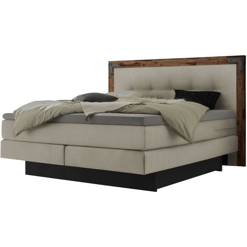 Boxspringbett mit PU-Schaum-Topper fest, Base-Top – Boxspringbett Nevada – Eiche – B 140 T 200 H 130 cm – Stellmass: 158 x 206cm, PU-Schaum-Topper, RG 35, 5cm hoch – Matratze: 609 Taschenfedern, Wattierung 100% PES; Topper: Bezug 100% PES, Füllung 100% Klimawatte; Box: 240 Bonellfedern