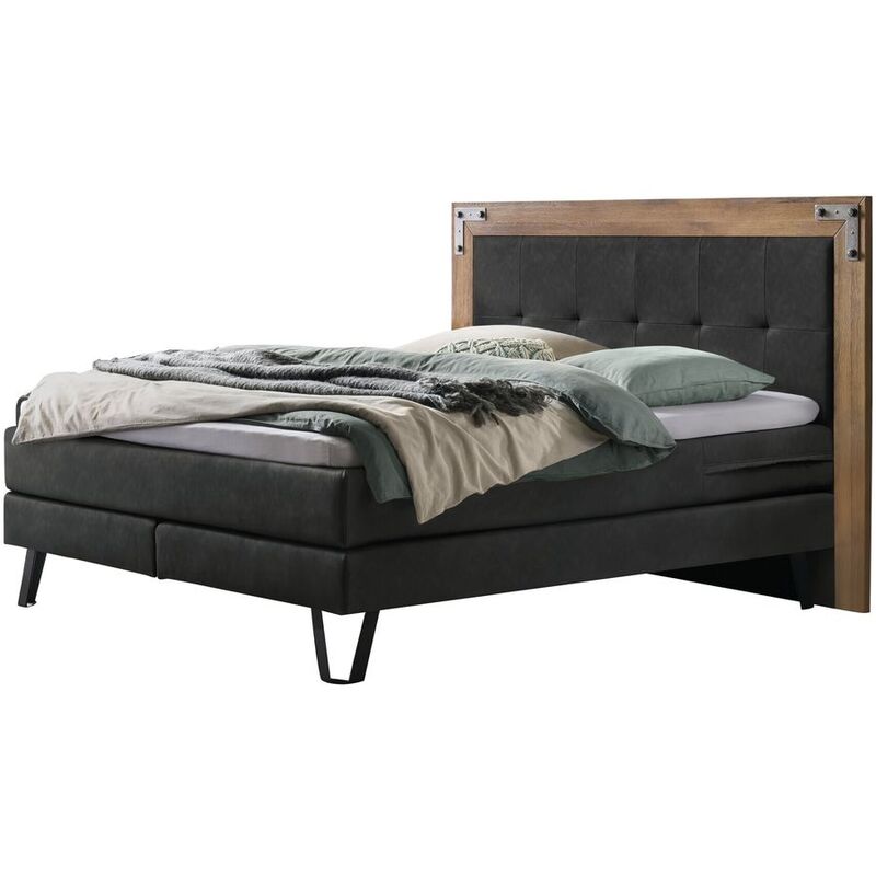 Boxspringbett mit Visco-Topper medium, Agrea-Top – Boxspringbett Oakland – Eiche – B 160 T 200 H 133 cm – Stellmass: 184 x 206cm, Visco-Topper RG 50, 8cm hoch – Matratze: 800 Taschenfedern, Wattierung 100% PES; Topper: Bezug 100% PES, Füllung 100% Klimawatte; Box: 288 Bonellfedern