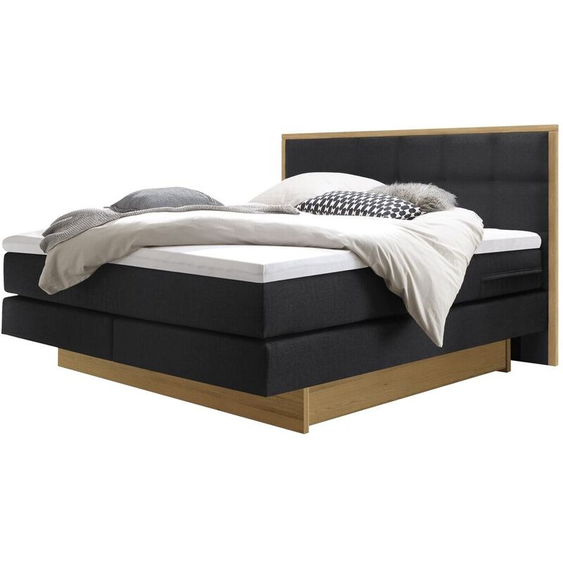 Boxspringbett mit PU-Schaum-Topper fest, Base-Top – Boxspringbett Ottawa – Eiche – B 160 T 200 H 125 cm – Stellmass: 168 x 205cm, PU-Schaum-Topper, RG 35, 5cm hoch – Matratze: 800 Taschenfedern, Wattierung 100% PES; Topper: Bezug 100% PES, Füllung 100% Klimawatte; Box: 288 Bonellfedern