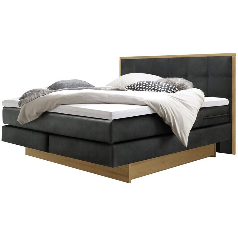 Boxspringbett mit Visco-Topper medium, Agrea-Top – Boxspringbett Ottawa – Eiche – B 140 T 200 H 125 cm – Stellmass: 148 x 205cm, Visco-Topper RG 50, 8cm hoch – Matratze: 609 Taschenfedern, Wattierung 100% PES; Topper: Bezug 100% PES, Füllung 100% Klimawatte; Box: 240 Bonellfedern