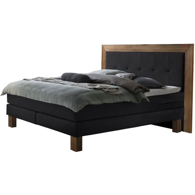 Boxspringbett mit PU-Schaum-Topper fest, Base-Top – Boxspringbett Rustico – Eiche – B 160 T 200 H 133 cm – Stellmass: 184 x 206cm, PU-Schaum-Topper, RG 35, 5cm hoch – Matratze: 800 Taschenfedern, Wattierung 100% PES; Topper: Bezug 100% PES, Füllung 100% Klimawatte; Box: 288 Bonellfedern
