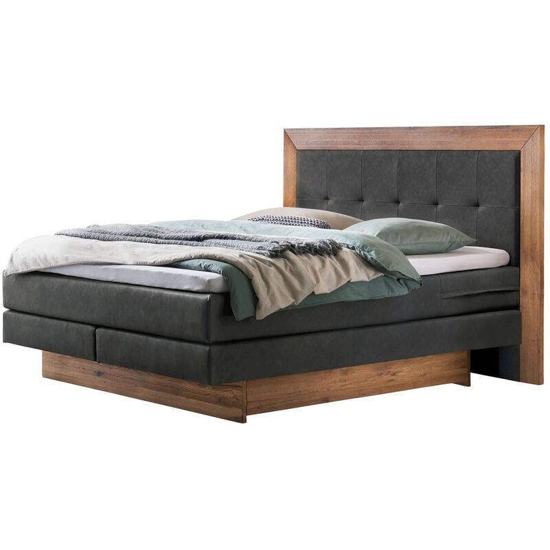 Boxspringbett mit PU-Schaum-Topper fest, Base-Top – Boxspringbett Texas – Eiche – B 160 T 200 H 133 cm – Stellmass: 184 x 206cm, PU-Schaum-Topper, RG 35, 5cm hoch – Matratze: 800 Taschenfedern, Wattierung 100% PES; Topper: Bezug 100% PES, Füllung 100% Klimawatte; Box: 288 Bonellfedern