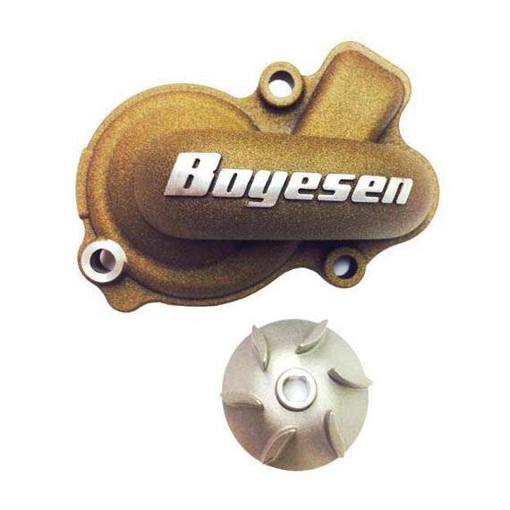 BOYESEN SUPERCOOLER WASSERPUMPENKIT Der Boyesen Supercooler Wasserpumpenkit besteht aus einem Aluminium-Feinguss Wasserpumpendeckel und Wasserpumpenrad und wurde speziell entwickelt um die Leistung des Kühlsystems zu verbessern. Dieses Wasserpumpenkit wurde getestet und entwickelt, um mehr Kühlwasser fliessen zu lassen. Dadurch dass die Strömung und der Druck höher sind wie beim Original, wird der Motor besser gekühlt und die Temperatur ist durchgehend niedriger. * Bessere Kühlung * Leistungsstärkste Wasserpumpe auf dem Markt * Verlängert die Motor Lebensdauer * Patentiertes Wasserpumpenrad * Wird von vielen Werkteams eingesetzt Ailette pompe a eau,motor zu heiss,wasserpumpe,pumpleistung,kühlwasser,water pump cover,wasserpumpenrad,überhitzungsprobleme,overheating Passend auf: HUSABERG FE450 FE501 HUSQVARNA FC450 FE450 FE501 KTM 450 EXC 450 SX-F 500 EXC
