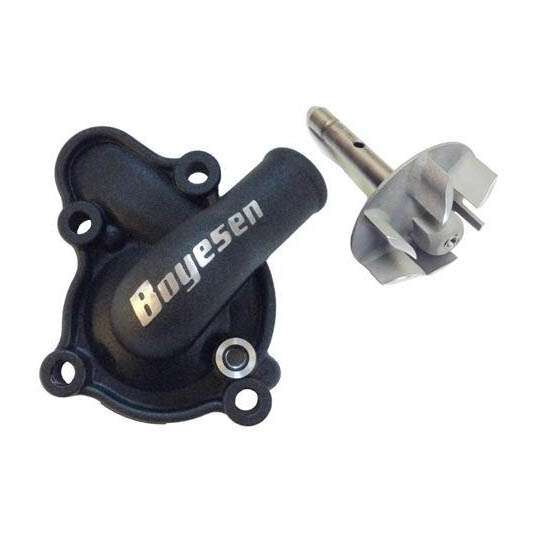 BOYESEN SUPERCOOLER WASSERPUMPENKIT Der Boyesen Supercooler Wasserpumpenkit besteht aus einem Aluminium-Feinguss Wasserpumpendeckel und Wasserpumpenrad und wurde speziell entwickelt um die Leistung des Kühlsystems zu verbessern. Dieses Wasserpumpenkit wurde getestet und entwickelt, um mehr Kühlwasser fliessen zu lassen. Dadurch dass die Strömung und der Druck höher sind wie beim Original, wird der Motor besser gekühlt und die Temperatur ist durchgehend niedriger. * Bessere Kühlung * Leistungsstärkste Wasserpumpe auf dem Markt * Verlängert die Motor Lebensdauer * Patentiertes Wasserpumpenrad * Wird von vielen Werkteams eingesetzt Ailette pompe a eau,motor zu heiss,wasserpumpe,pumpleistung,kühlwasser,water pump cover,wasserpumpenrad,überhitzungsprobleme,overheating Passend auf: YAMAHA YZ125