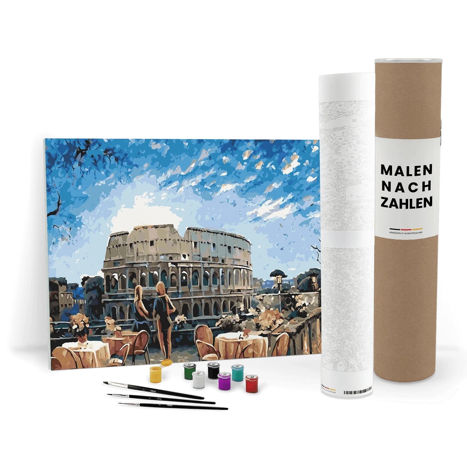 Mit dem Malen-nach-Zahlen-Set Café am Kolosseum holst du dir ein Stück Rom direkt zu dir nach Hause. Stell dir vor, du sitzst in einem gemütlichen Café und geniesst den atemberaubenden Blick auf das Kolosseum. Lass dich von der historischen Atmosphäre verzaubern und schaffe dein ganz persönliches Kunstwerk.
