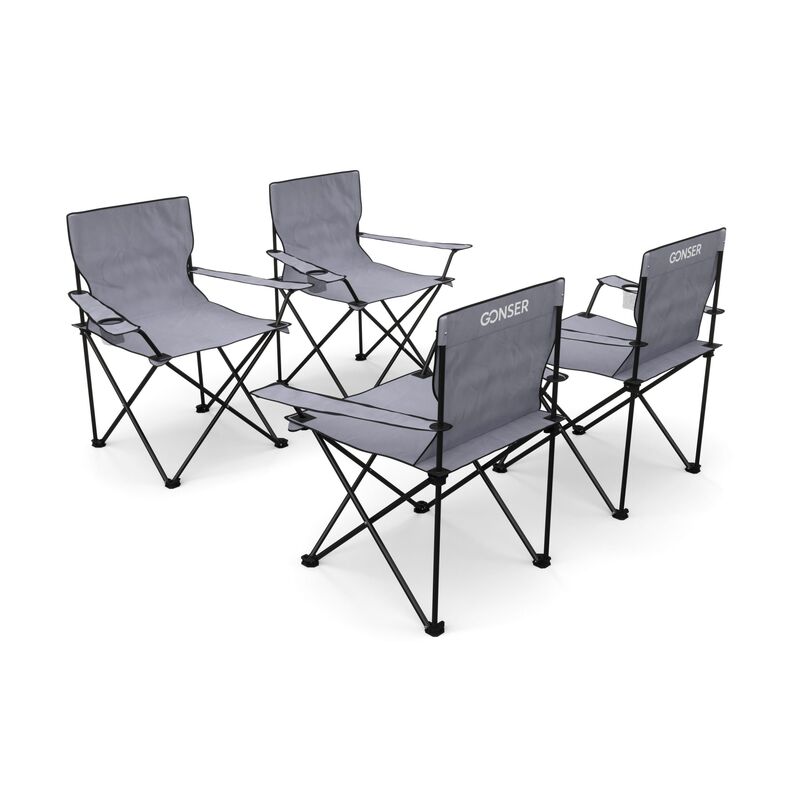 Wenn du eine praktische Sitzgelegenheit fürs Campen suchst, ist dieser zusammenklappbare Stuhl ideal! Die Sitzfläche aus Stoff, sowie die Rücken- und Armlehnen bieten hohen Komfort. Damit du immer eine Erfrischung griffbereit hast, ist in der rechten Armlehne ein Getränkehalter integriert. Für den Transport und die Lagerung kann der Stuhl platzsparend zusammengefaltet werden. Sorge mit diesem 4er Set für ausreichend Sitzplätze beim nächsten Campingausflug oder OpenAir-Konzert!