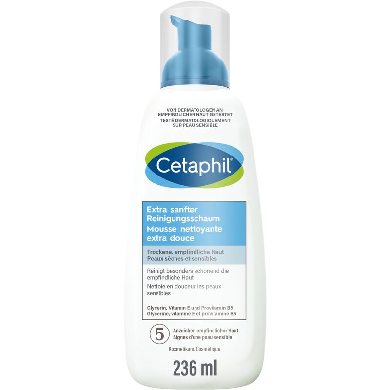 Der selbst-schäumend Cetaphil extra sanfter Reinigungsschaum mit leichter und reichhaltiger Textur, reinigt die Haut besonders sanft ohne Irritationen und Spannungsgefühl für eine intakte Hautbarriere. Der Schaum spendet der Haut schon beim Waschen Feuchtigkeit dank Glycerin und Panthenol. Die seifenfrei Formulierung ohne Duftstoffe brennt nicht in den Augen und eignet sich somit auch für Kontaktlinsenträger.