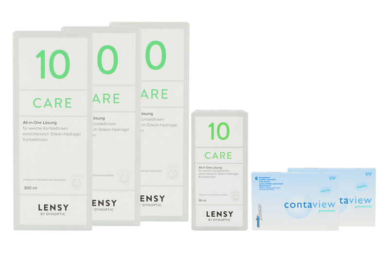 Contaview premium toric UV 2 x 6 Monatslinsen + Lensy Care 10 Halbjahres-Sparpaket