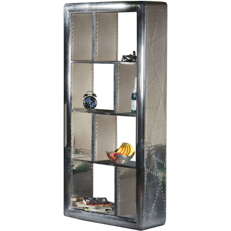 Regal – Regal Air – Holz – B 90 T 30 H 180 cm – Regal aus Mangoholz und MDF mit Alu beschlagen. Das Regal hat acht offene Fächer. Mit Zierschrauben.