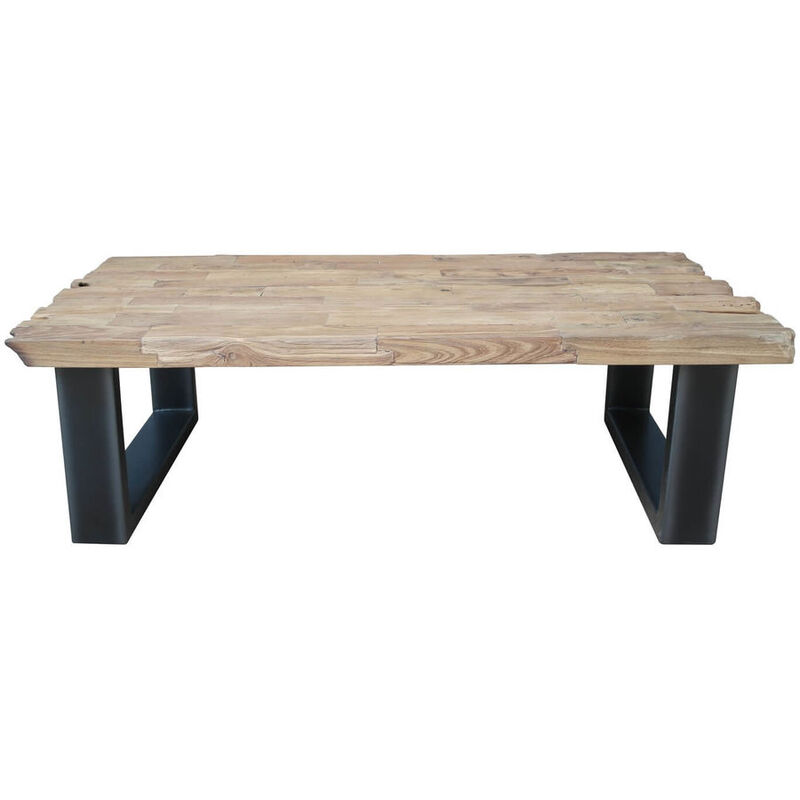 Couchtisch – Salontisch Roco – Holz/Metall – B 130 T 70 H 40 cm – Couchtisch aus recyceltem Teak mit Metall. Mit unregelmäßiger Kante an den kurzen Seiten.