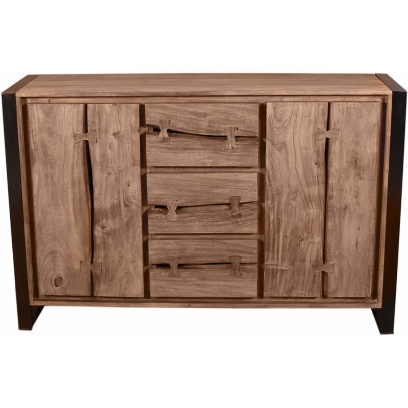 Sideboard – Sideboard Life – Holz – B 140 T 40 H 90 cm – Sideboard aus Akazie mit Metall mit zwei Türen und drei Schubladen.