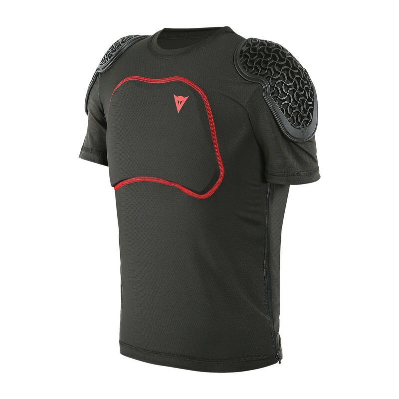 DAINESE SCARABEO PRO PROTEKTORENHEMD MTB-Schutztrikot für Kinder mit Pro-Shape-Protektoren an Schultern, Brustkorb und Rücken. Die Produktlinie Dainese Scarabeo stellt kleinen Fahrern die von den großen MTB-Champions entwickelten Technologien zur Verfügung, die auch bei den Weltmeisterschaften zum Einsatz kommen. Die volle Sicherheit der Profis zum Schutz der Athleten von morgen. Scarabeo Pro Tee ist ein leichtes und atmungsaktives Schutztrikot, das für jede MTB-Disziplin geeignet ist. Es ist mit abnehmbaren, weichen Pro-Shape Scarabeo-Protektoren an Schultern, Brustkorb und Rücken ausgestattet, die eine große Bewegungsfreiheit und Belüftung ermöglichen. Die Struktur des Pro-Shape Scarabeo-Protektors ist von der Geometrie der natürlich vorkommenden auxetischen Materialien inspiriert: Bei Aufprall oder Beanspruchung dehnen sich diese gleichzeitig in alle Richtungen aus und vergrößern so den Abdeckungsbereich. Ihre Struktur, die den Abdeckungsbereich zu 55 % offen lässt, und das Gewebe aus höchst atmungsaktivem Material garantieren zusammen höchste Leichtigkeit und eine optimale Belüftung in jeder Phase der Fahrt, auch an den heißesten Tagen. Die Möglichkeit, die Rücken- und Brustprotektoren vollständig zu entfernen, bringt eine große Vielseitigkeit mit sich: So besteht die freie Wahl, welche der Protektoren verwendet werden sollen und auch das Waschen wird deutlich erleichtert. Der Reißverschluss des Trikots ist seitlich angebracht, um eine maximale Ausdehnung des Brustkorbschutzes zu gewährleisten. Die Länge des Trikots wurde so konzipiert, dass es in der Hose getragen werden kann, was für zusätzliche Stabilität sorgt. Scarabeo Pro Tee ist mit dem innovativen und patentierten Dainese RIBBO System ausgestattet: Durch das Zerschneiden von speziellen Haltevorrichtungen, welche die Elastizität des Gewebes regulieren, kann die Weite des Kleidungsstücks allmählich vergrößert werden, sodass dieses gemeinsam mit dem jungen Fahrer wächst. Auf diese Weise kann es für mehrere aufeinanderfolgende Saisons genutzt werden. Mit Dainese wachsen Kinder zu echten Profis heran. * RIBBO System mit Größenanpassung * CE EN 1621.1 * CE EN 1621.2 Level 1 * Atmungsaktives Mesh-Gewebe * Rückenprotektor mit Auxagon-Technologie * Auxetischer Oberkörperschutz * Scarabeo Pro-Shape Protector * Scarabeo Pro-Shape Shoulder Protector brustpanzer 2021,oberkörper protektor 2021,oberkörperprotektor 2021,brustprotektor 2021,brustschoner 2021,schutzshirt,schutzleibchen,schutzpolster,brustschutz,roost,leichter panzer,leichter schutz,lightweight,schoner,padded shirt,oberkörperschutz,schonershirt,light vest,light protection