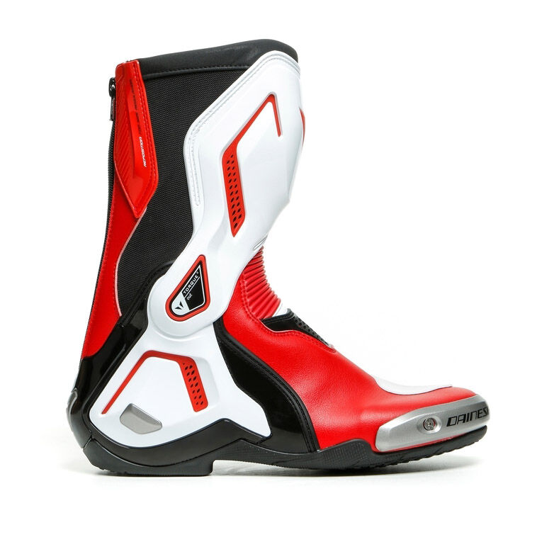Rennstiefel aus Mikrofaser und D-Stone Gewebe mit D-Axial Schutzsystem und Slidern aus Magnesium. Für maximale Leistung. Dieser Rennstiefel ist aus Mikrofaser und D-Stone-Gewebe gefertigt und mit TPU-Einsätzen mit hoher Haftfähigkeit ausgestattet. Die austauschbaren Magnesium-Slider, das schützende Nylon an Schaft, Ferse und Spitze und das exklusive D-Axial-System aus TPU zum Schutz vor der Torsion des Fusses garantieren Komfort und Schutz. Ein echter Champion im Hinblick auf Leichtigkeit und Performance, dank des internen Rückhaltebands, des Schnellverschlusssystems und der Luftführung, der Magnesiumeinsätze an der Aussenseite und den Fersen und der flexiblen Gelenkverbindungen für grösseren Komfort auch nach dem Absteigen vom Motorrad. Sicherheit und Vertrauen, um sich auf jeder Rennstrecke zu verwirklichen. * Schaltschutz * Hochleistungs-TPU-Einsätze * Stellschrauben-Schraubenschlüssel mitgeliefert * Reissverschluss hinten * Flexible Gelenke für zusätzlichen Gehkomfort * Schnellschnürsystem HAUPTMATERIALIEN * D-Stone-Gewebe * Gummisohle * Mikrofaser-Obermaterial PROTEKTOREN * Stiefel zertifiziert nach Kat. II – Norm EN 13634 * D-Axial System aus TPU * Magnesium-Einsätze auf Aussenseite und Ferse * Nylon-Ferse * Schützende Nyloninnenhülle * Verstärkte Nylonzehe * Auswechselbarer Magnesium-Slider (1999948 Kit Stiefel Magnesium, 1999885 Edelstahl Stiefel Slider Kit, 1999954 Kit Stiefel Slider Kunststoff 16) * Rückhalte-Innenband * Hinterer TPU-Inneneinsatz TEMPERATUR * Luftkanalisationssystem * Double Jersey-Airgap-Futter GRÖSSEN: 39-47 BY_DAINESEUPDATE2022,dainese,dainese motorrad,dainese moto,dainese töff,dainese bekleidung,dainese motorradbekleidung,dainese töffbekleidung,dainese ausrüstung,dainese online,dainese onlineshop,dainese schweiz,dainese schwiiz,dainese online,dainese 2022,dainese 22,motorradstiefel,strassenstiefel,rennstiefel,racing boots,motogp,töffstiefel,stivali moto,bottes moto,bottes rue,stivali strada,