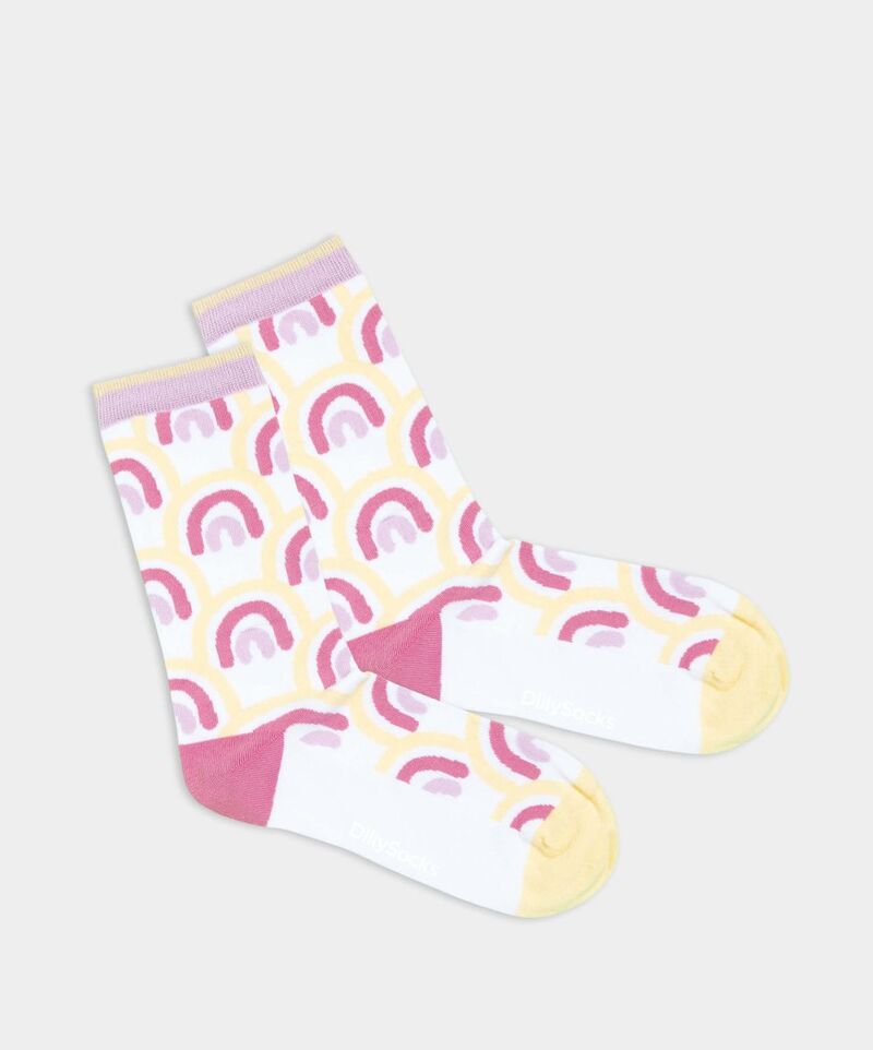 – Damensocken in Weiss Rosa Gelb mit Geometrisch Motiv/Muster