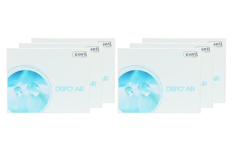Dispo Air, 6 x 90 Stück Kontaktlinsen von Conil. Tageslinsen aus hochwertigem und sauerstoffdurchlässigem Silikon-Hydrogel Material für langanhaltenden Komfort.