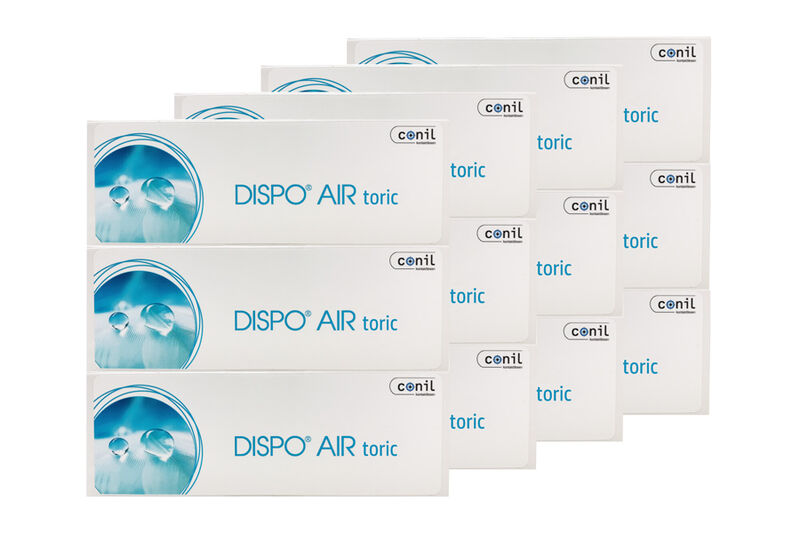 Dispo Air toric, 4 x 90 Stück Kontaktlinsen von Conil. Tageslinsen aus hochwertigem und sauerstoffdurchlässigem Silikon-Hydrogel Material für langanhaltenden Komfort.