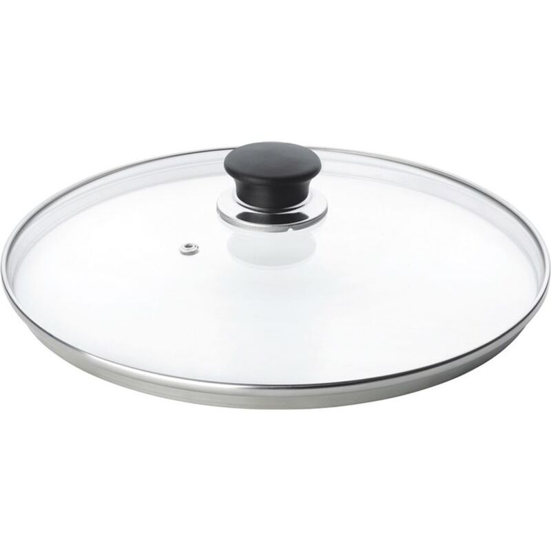 Glasdeckel m. Edelstahlrand, Ø24 cmGlasdeckel m. schwarzem Knopf, 24cm