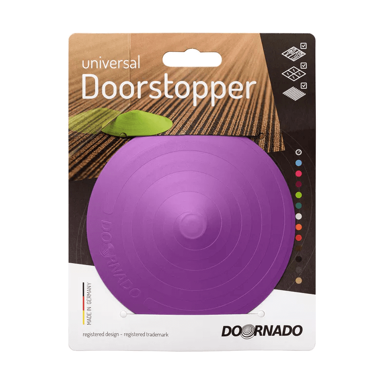 Der Doornado-Türstopper wird aus 2-Komponenten-Kunststoff hergestellt: eine harte Oberschale und eine weiche Unterseite. Diese Kombination sorgt dafür, dass Doornado auf jedem Untergrund haftet. Der Doornado ist rund, deshalb kann er in jeder Position verwendet werden: Nie wieder bücken, um den Türstopper hinzulegen. Wir sind stolz, dass der Doornado in einem deutschen Familienunternehmen produziert wird. Langlebig und stilvoll – kombiniert in einem Produkt. Der Doornado ist für jeden Boden geeignet: Fliesen, Holz, Laminat oder Teppich, Doornado klemmt überall! Wählen Sie eine Farbe, die zu Ihrer Einrichtung passt: auffallend & fröhlich, oder lieber stilvoll & dezent. 12 Farben verfügbar. Doornado. Der farbenfrohe Türstopper mit einem zuverlässigen deutschen Design. Verhindert Beschädigungen und kann auf jeder Oberfläche verwendet werden.