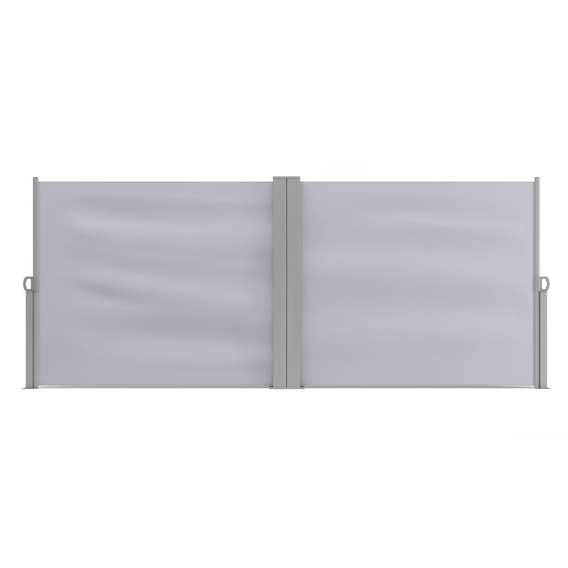 Mit dieser doppelten Seitenmarkise sorgst du für mehr Privatsphäre und Sonnenschutz in deinem Aussenbereich. Die Seitenwand lässt sich auf beiden Seiten bis zu je vier Meter variabel ausziehen – so ist sie ideal für grössere Terrassen und Gärten geeignet. Die Verarbeitung aus PU beschichtetem Polyester und Stahl ist langlebig und wetterfest. Bereite dich auf erholsame Sommerabende auf der Terrasse vor!