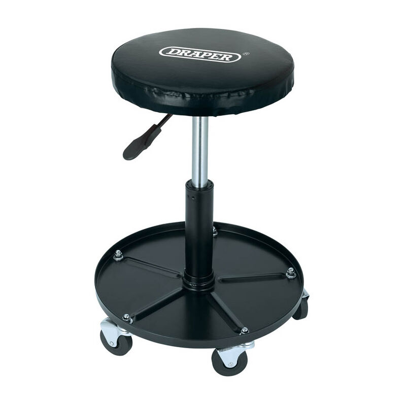 Komfortabler und langlebiger Arbeitssitz aus leicht zu reinigendem, ölbeständigem Vinylschaum. Ausgestattet mit fünf grossen Rollen und einem einfach zu verstellenden hydraulischen Sitz, mit einer eingebauten Ablageschale an der Basis. mechaniker drehstuhl,mechaniker hocker,werkstatt stuhl,tabouret atelier,work seat