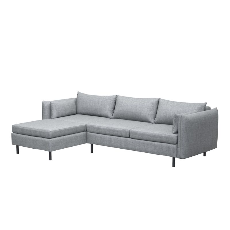 Dieses Ecksofa AIDEN hat alles, was ein gutes Sitzmöbel braucht. Es brilliert durch seine schlichte Eleganz und die komfortable Polsterung. Das schlichte Grau des Textilstoffs passt wunderbar zu den dezenten schwarzen Metallbeinen und harmoniert bestens mit bestehender Einrichtung. Mit den passenden Dekokissen verwandelst du die Couch im Nu in einen echten Hingucker. Worauf wartest du noch? Richte gekonnt ein mit den Wohnzimmermöbeln von GONSER!