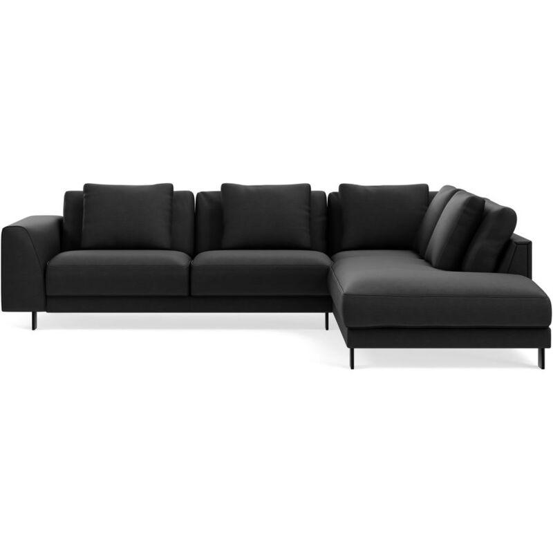 Ecksofa mit Récamière rechts – Ecksofa Avena – Stoff/Metallfuss schwarz – B 283 T 233 H 74 cm – Fusshöhe: 10cm