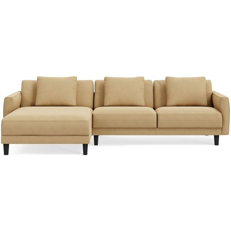 Ecksofa mit Récamière links – Ecksofa Avena – Stoff/Holzfuss schwarz – B 278 T 163 H 77 cm – Fusshöhe: 13cm