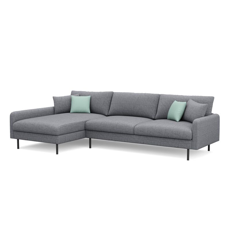 Eine Couch für Menschen mit Ansprüchen: Das Ecksofa LEAH in schlichtem Grau. Das Sofa überzeugt durch seine klassische Linienführung und sein unaufgeregtes Design. Die schwarzen Sofabeine sorgen für die nötige Portion Eleganz und sind echte Hingucker. Auf der ausladenden Sitz- und Liegefläche kannst du dich bequem räkeln und vom stressigen Alltag erholen. Die weichen Polsterkissen sorgen für höchsten Komfort. Richte deine Wohnung gekonnt ein mit den modernen Wohnzimmermöbeln von GONSER.CH!