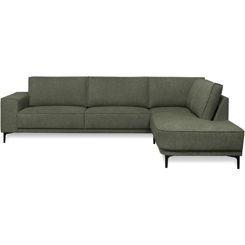 Marjorie Sofa rechts olive – Ecksofa Marjorie – Stoff – B 289 T 210 H 85 cm – Sitzkissen: Polyurethan-Schaumstoff 30kg/m3 / Rückenkissen: 50% gekräuselter Schaumstoff, 50% silikonisierte Faserfüllung