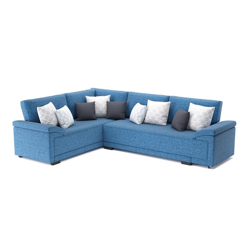 Entdecke das Ecksofa LYNN in schönem Blau. Egal ob du gemütlich ein Buch lesen möchtest oder einen Fernsehabend mit Freunden veranstaltest – es bietet genügend Platz und hohen Sitz- und Liegekomfort. Das Sofa ist dank den praktischen Rollen im Nu zu einem Gästebett umfunktioniert, also kein Problem bei spontanem Übernachtungsbesuch. Hol dir jetzt dieses tolle ausziehbare Ecksofa in dein Wohnzimmer!