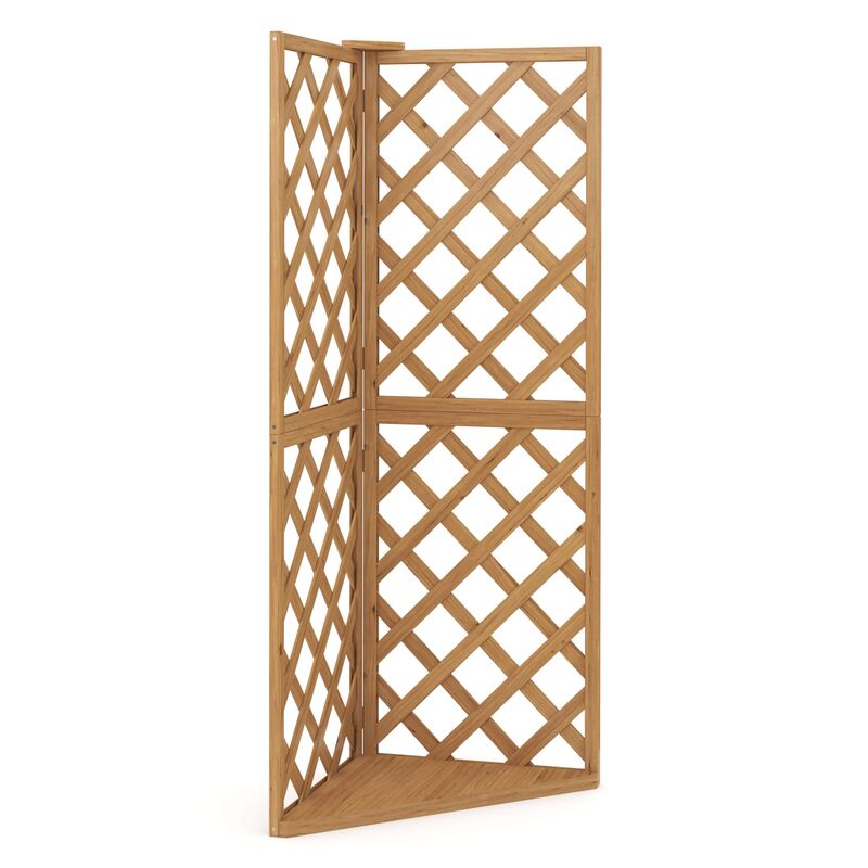 Magst du es gerne grün? Dann bist du mit diesem Rankgitter genau richtig! Du kannst damit nämlich deinen Balkon, deine Terrasse oder deine Pergola begrünen. Am Holzgitter kannst du allerlei Kletterpflanzen wie Rosen, Bohnen oder Trauben hochwachsen lassen. Das ästhetische Tannenholz sorgt dabei für einen echten Hingucker. Die Bodenplatte bietet dir eine praktische Ablagefläche für Blumentöpfe, Laternen und vieles mehr. Worauf wartest du noch? Gestalte deine persönliche Gartenidylle mit diesem Eckspalier Rankgitter aus Naturholz!