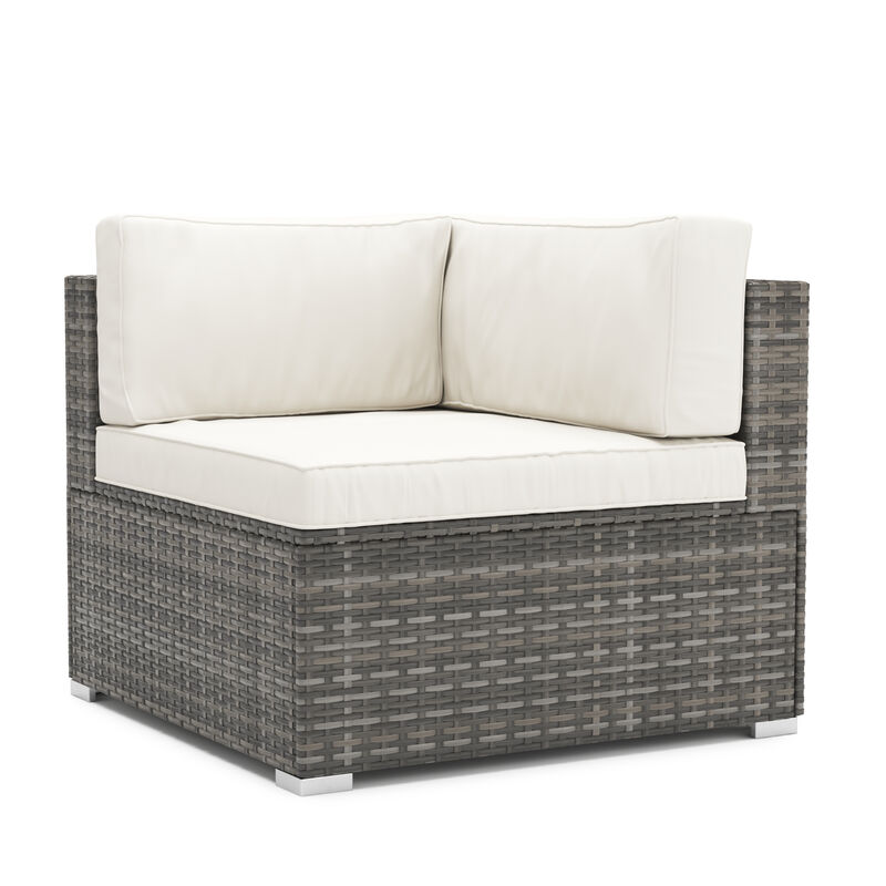 Machen Sie es sich auf diesem robusten Eckmöbel in schlichtem Grau-Weiss gemütlich! Die wasserfesten Kissen sind ideal für den Aussenbereich und bieten Ihnen unvergleichlichen Komfort. Durch das hochwertige Rattan und pulverbeschichtetem Stahl sitzen Sie stets stabil und kommen nie ins Wackeln. Ganz einfach mit anderen LINDOS Möbeln kombinierbar: Stellen Sie sich Ihre individuelle Rattanlounge zusammen!