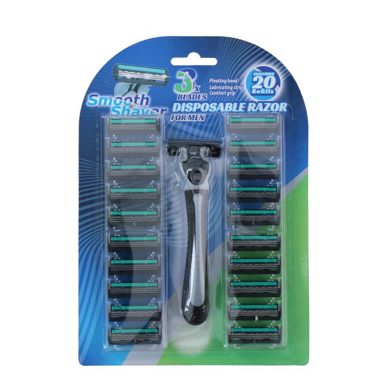 - Schwenkbarer Rasieraufsatz mit drei Edelstahlklingen