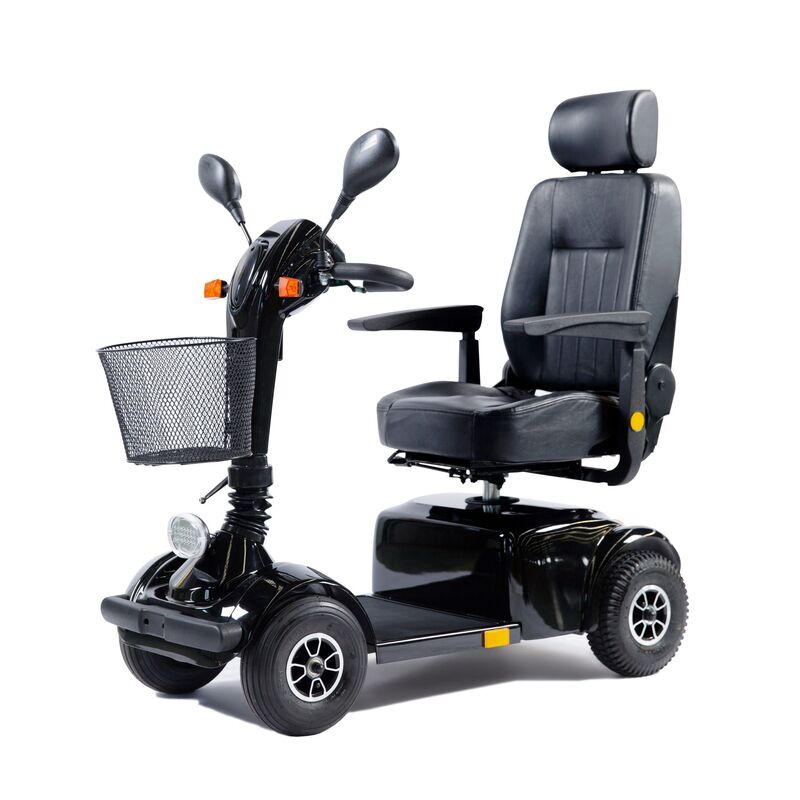 Dieser Roller macht Sie mobil! Das Elektromobil GO in schlichtem Schwarz legt mit einer Akkuladung bis zu 45 km zurück. Strecken auf ebenem Untergrund fährt der Scooter mit bis zu 10km/h. Der 450 Watt starke Motor lässt Sie auch bei Steigungen von bis zu 26 % nicht im Stich. Sicherheit bieten die Rückspiegel samt Blinker sowie das automatische Bremssystem, welches den Scooter beim Loslassen des Fahrhebels zum Stillstand kommen lässt. Für gute Sichtbarkeit sorgt der Scheinwerfer und die rundum angebrachten Reflektoren. Sitz und Lenker sowie die Rücken- und Armlehnen lassen sich individuell einstellen. Dank seiner Kompaktheit und Wendigkeit eignet sich der Roller auch zum Fahren in Innenräumen wie z.B. Supermärkte. Mit dem Elektromobil GO fahren Sie sicher und bequem!