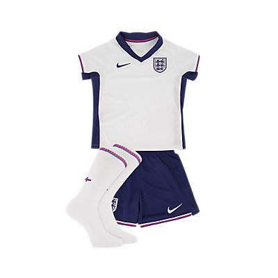 Mit dem dreiteiligen England Home Replica Fussballset kleidest du die Stars von morgen im kompletten Look der englischen Nationalmannschaft. Die Designinspiration für Trikot, Shorts und die passenden Socken lieferten die Outfits der Profis selbst. Das leichte, schweissableitende Material hält junge Sportler beim Krabbeln, Toben und Spielen angenehm trocken.