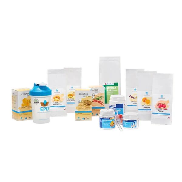 In einer EPD-Tagesration sind alle für einen Tag erforderlichen Nährstoffe in ausgewogener Menge enthalten. Bei Einhaltung der Anzahl Portionen und Menge der Portionen tritt kein unterschwelliger Nährstoffmangel auf. Die EPD® Basisprodukte zum Mahlzeitenersatz helfen Ihnen im Rahmen einer kalorienreduzierten Diät, Gewicht abzunehmen oder das Gewicht zu halten .