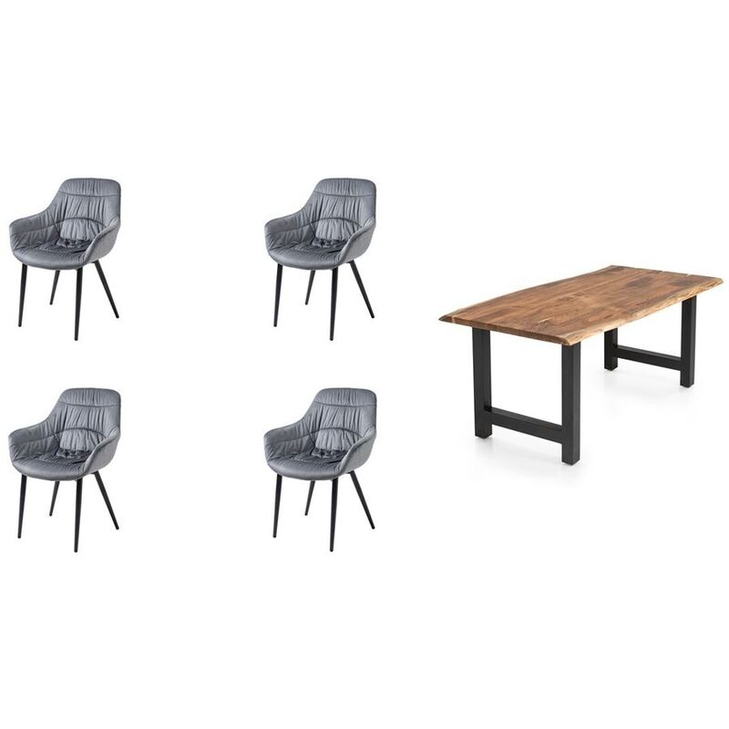 Essgruppe 5 tlg. 160×85 cm – Essgruppe Eats – Akazie/Samt – B 160 T 85 H 76.5 cm – Plattenstärke: 35 mm, Masse des Stuhls: 63x61x81.5