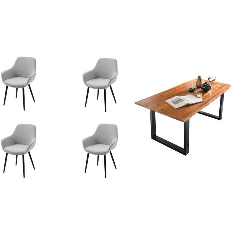 Essgruppe 5 tlg. 180×90 cm – Essgruppe Eats – Akazie/Strukturstoff – B 180 T 90 H 77 cm – Plattenstärke: 26 mm, Masse des Stuhls: 64x59x86