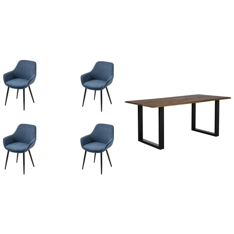 Essgruppe 5 tlg. 180×90 cm – Essgruppe Eats – Akazie/Strukturstoff – B 180 T 90 H 75 cm – Plattenstärke: 26 mm, Masse des Stuhls: 64x59x86
