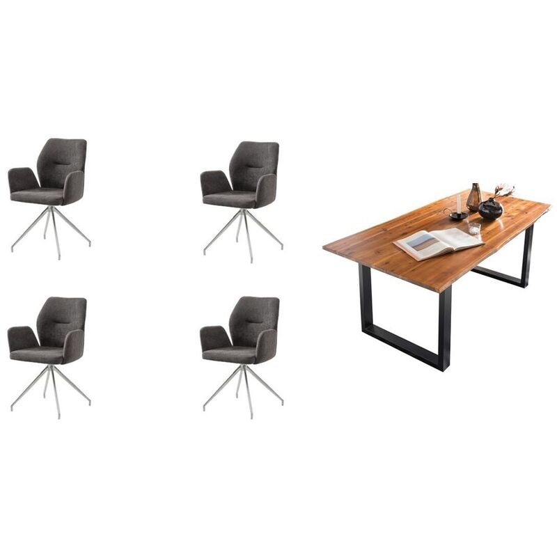 Essgruppe 5 tlg. 180×90 cm – Essgruppe Eats – Akazie/Strukturstoff – B 180 T 90 H 77 cm – Plattenstärke: 26 mm, Masse des Stuhls: 60x62x89