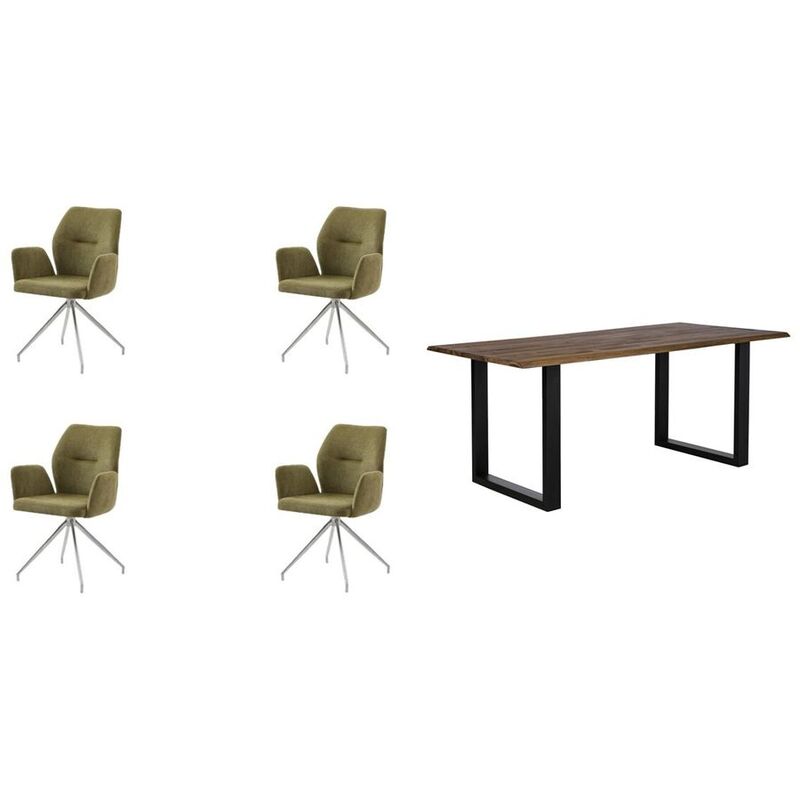 Essgruppe 5 tlg. 160×90 cm – Essgruppe Eats – Akazie/Strukturstoff – B 160 T 90 H 75 cm – Plattenstärke: 26 mm, Masse des Stuhls: 60x62x89