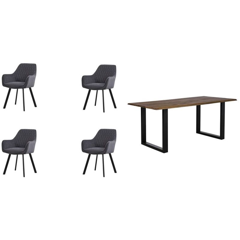 Essgruppe 5 tlg. 180×90 cm – Essgruppe Eats – Akazie/Samt – B 180 T 90 H 75 cm – Plattenstärke: 26 mm, Masse des Stuhls: 61x68x82
