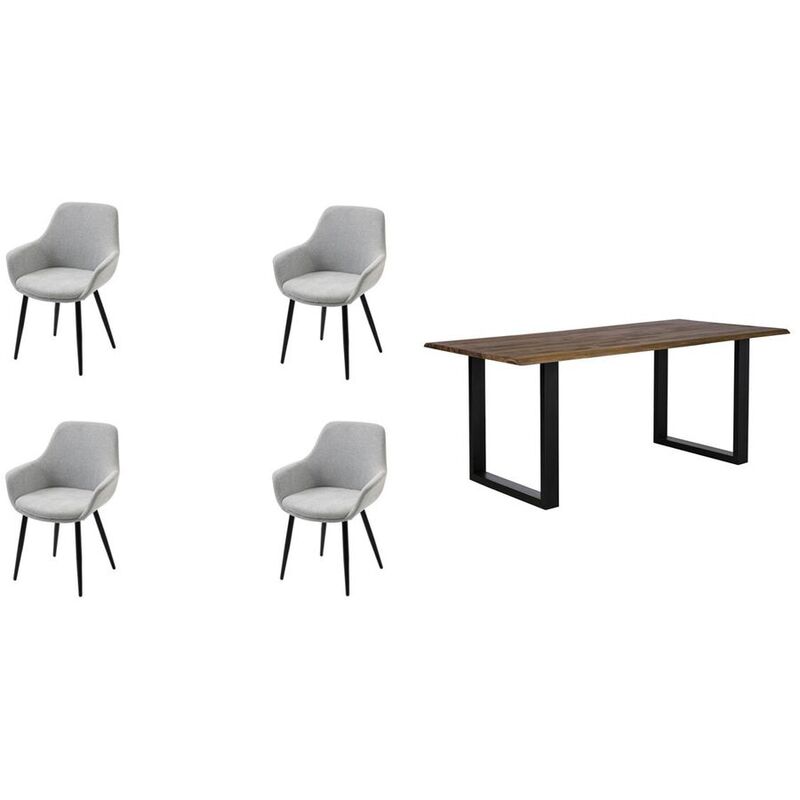 Essgruppe 5 tlg. 180×90 cm – Essgruppe Eats – Akazie/Strukturstoff – B 180 T 90 H 75 cm – Plattenstärke: 26 mm, Masse des Stuhls: 64x59x86