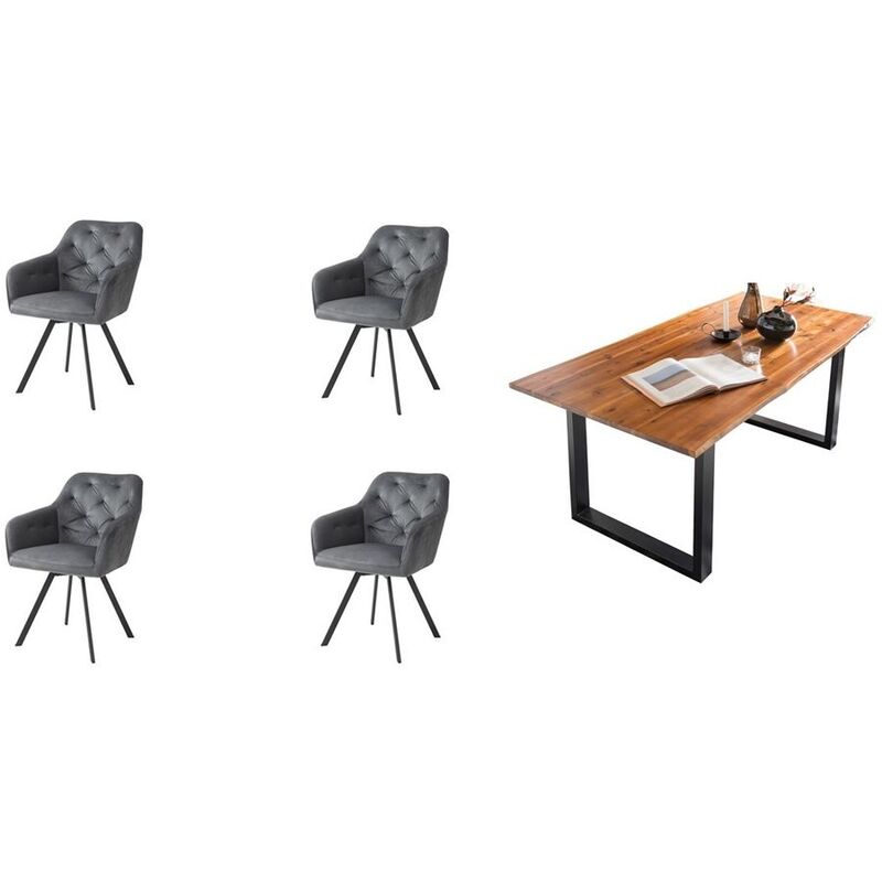 Essgruppe 5 tlg. 180×90 cm – Essgruppe Eats – Akazie/Samt – B 180 T 90 H 77 cm – Plattenstärke: 26 mm, Masse des Stuhls: 61x62x85